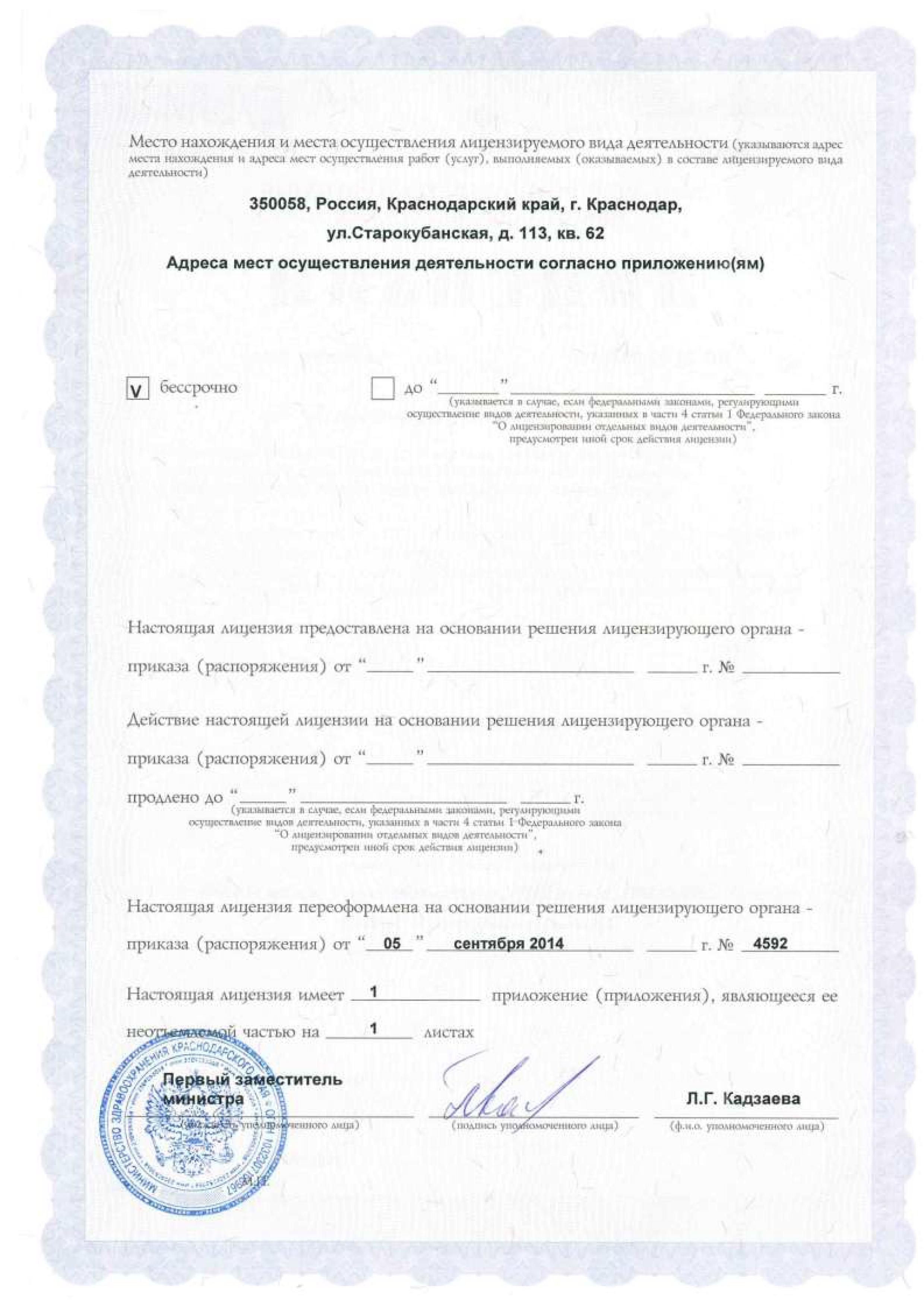 Центр наркологической помощи «ДельтаМед» в Краснодаре является официально зарегистрированной медицинский организацией, которая осуществляет свою деятельность на основании лицензии. Наша круглосуточная наркологическая клиника своевременно проходит все необходимые проверки и получает разрешения на предоставление всего спектра услуг.